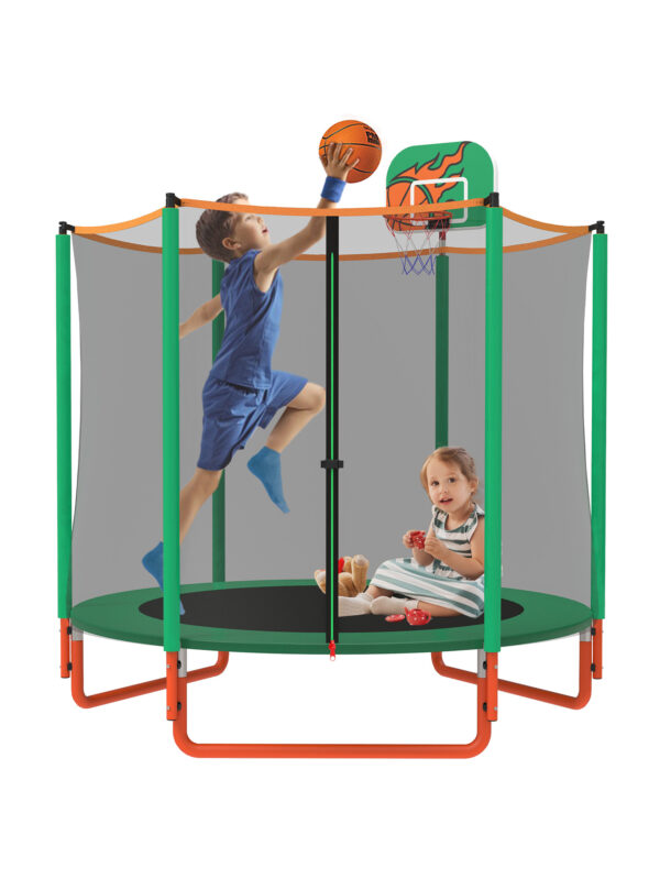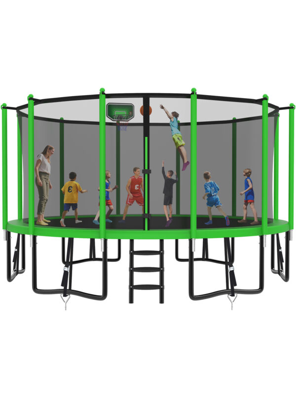 Alpha Series Trampoline with Basketball Hoop and Light Green