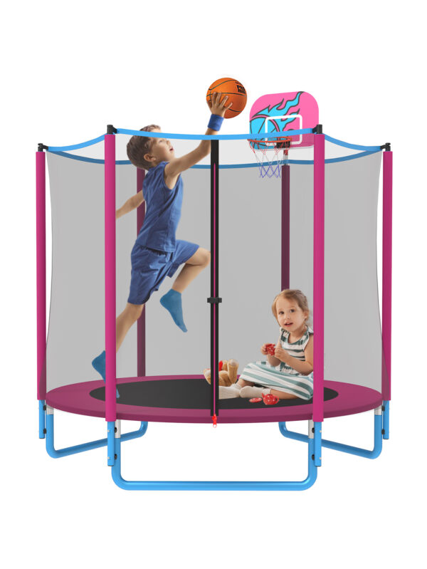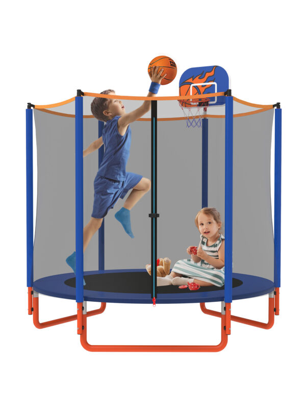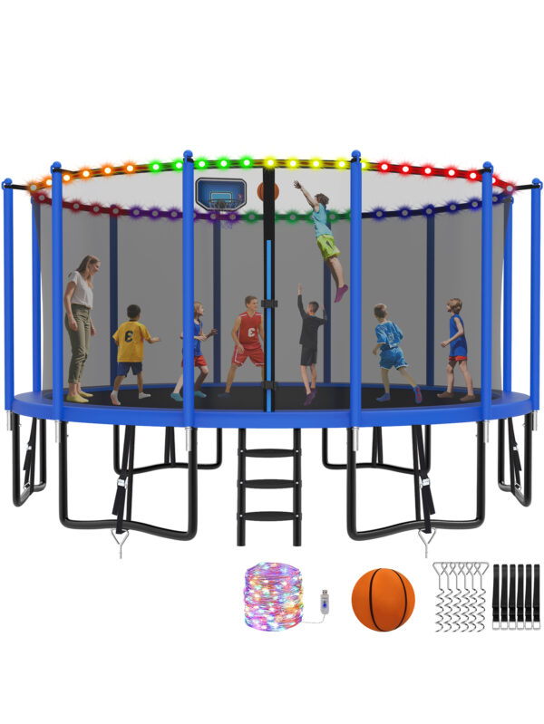 Alpha Series Trampoline with Basketball Hoop and Light Blue