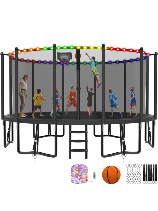 Alpha Series Trampoline with Basketball Hoop and Light Black