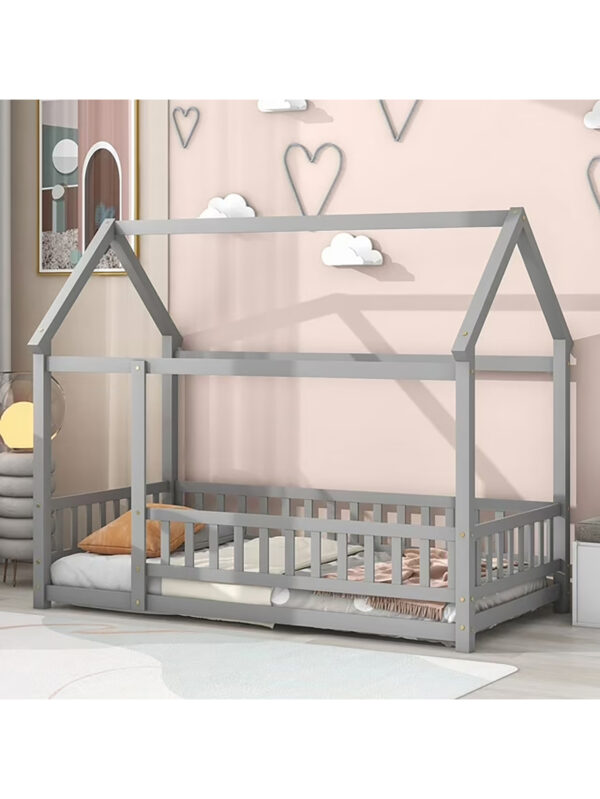 Wooden Floor Bed for Kids Gray
