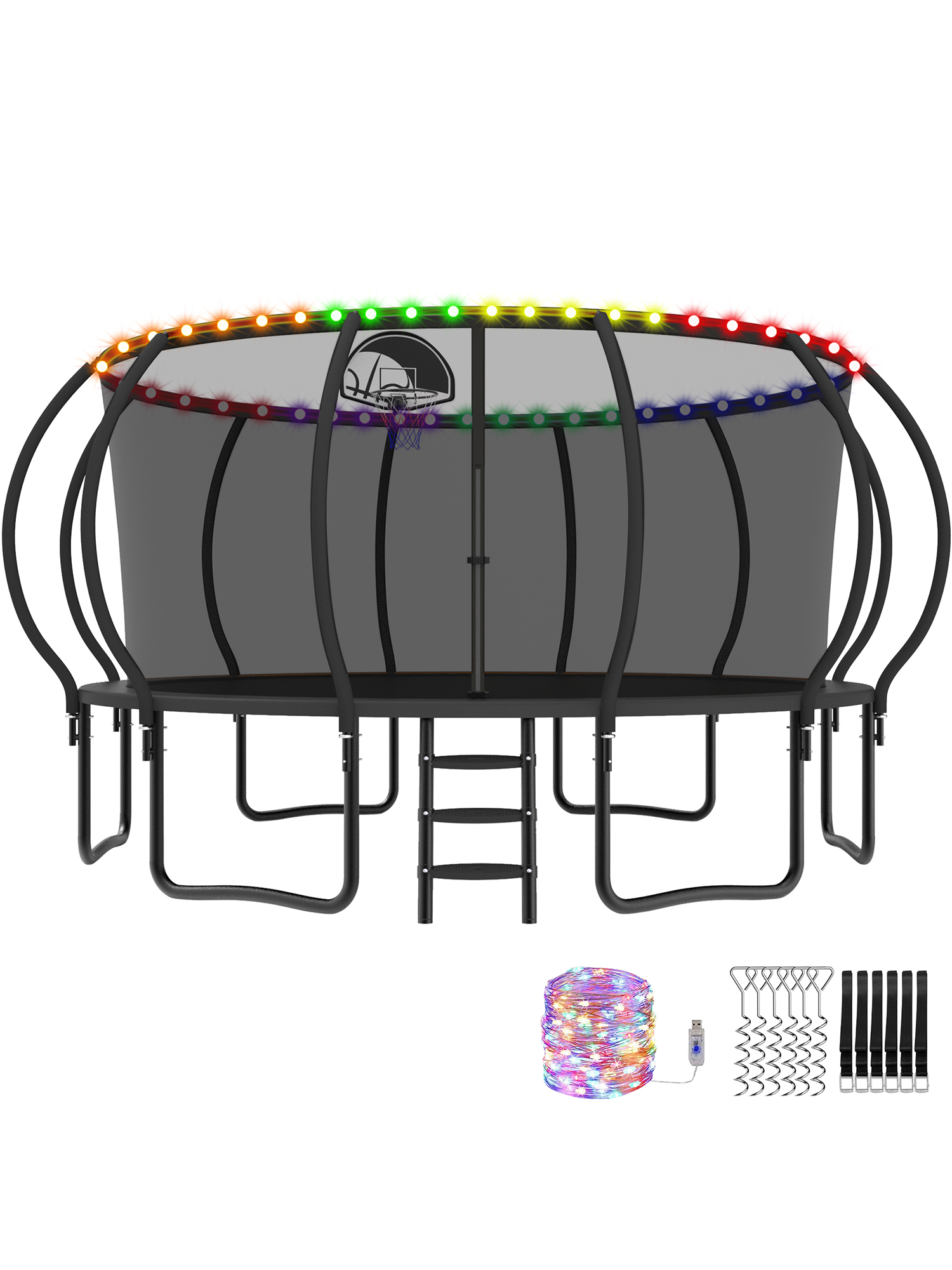 Beta Series Trampoline with Basketball Hoop and Light Black